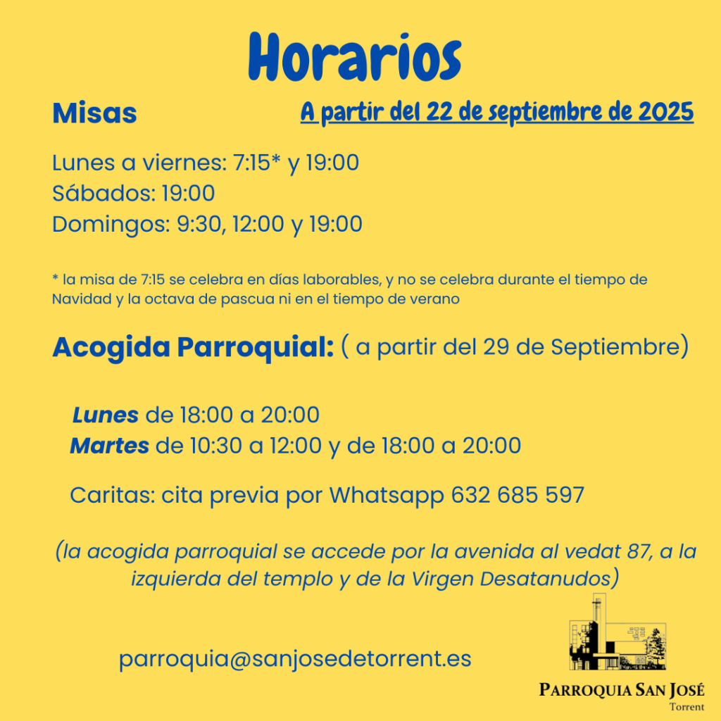 Os atenderemos en la acogida parroquial (acceso por Avd. Al Vedat 87)